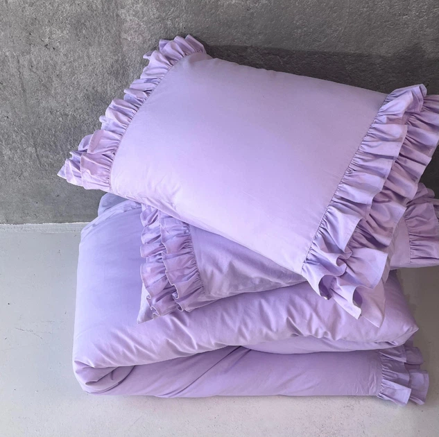 Комплект постільної білизни з рюшами двоспальний, 180*200, Washed cotton, ліловий