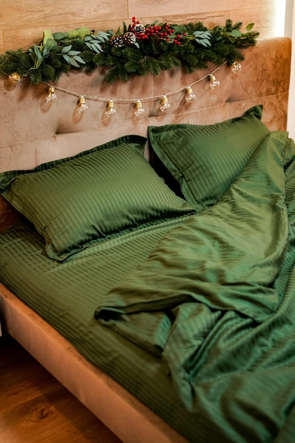 Сімейний Смарагдовий комплект постільної білизни Belinens/ преміумний сатин-страйп/ підковдри 2х155х220 см/ 100 бавовна