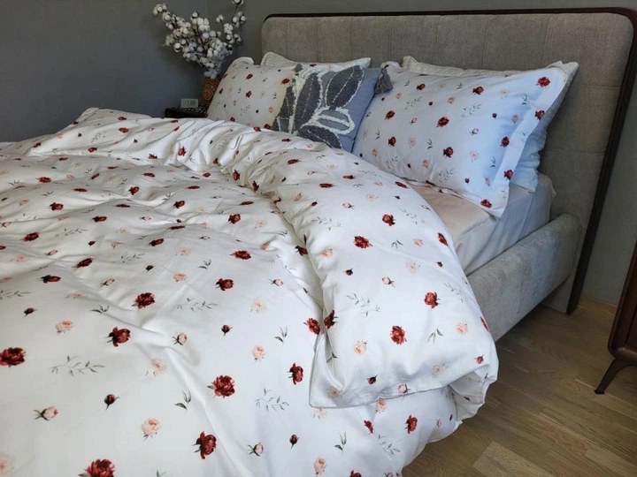 Постільна білизна з резинкою PEONIES, сатин PREMIUM Сімейний розмір, наволочки 50/70