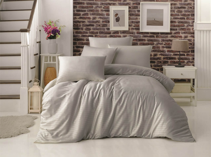 Постільна білизна "Ніжна Класика" зі страйп-сатину - двоспальний, простирадло на гумці, наволочки 7070, в коробці з мішечком