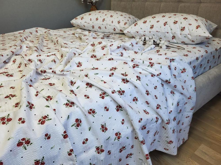 Постільна білизна з гумкою Майя євро розмір 200х220 см, жатка, турецький ранфорс гофре , наволочки 50х70, 100 бавовна