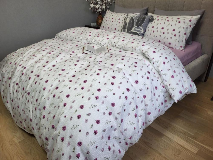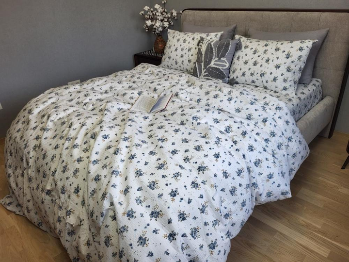 Постільна білизна з гумкою Німфа євро розмір 200х220 см, жатка, турецький ранфорс гофре , наволочки 50х70, 100 бавовна