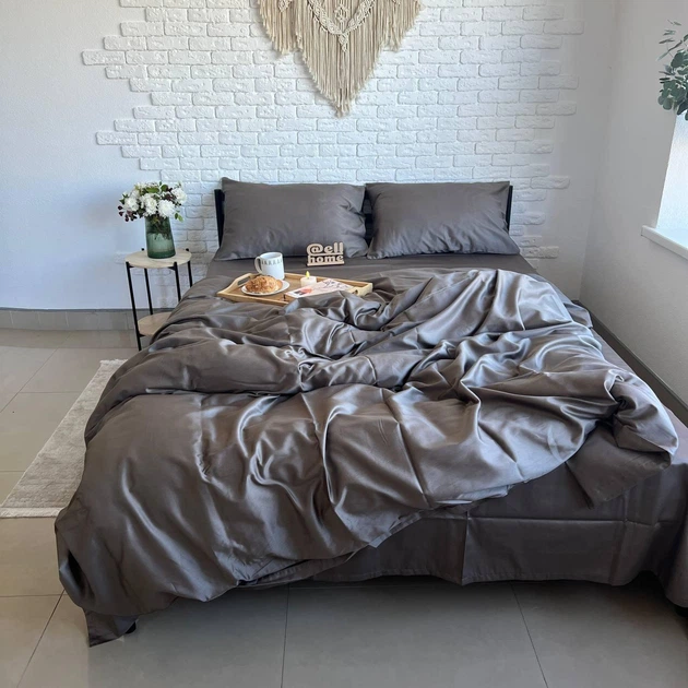 Комплект постільної білизни Ell Home сатин PREMIUM (Туреччина) сірий євро 50/70 на резинці 180/200