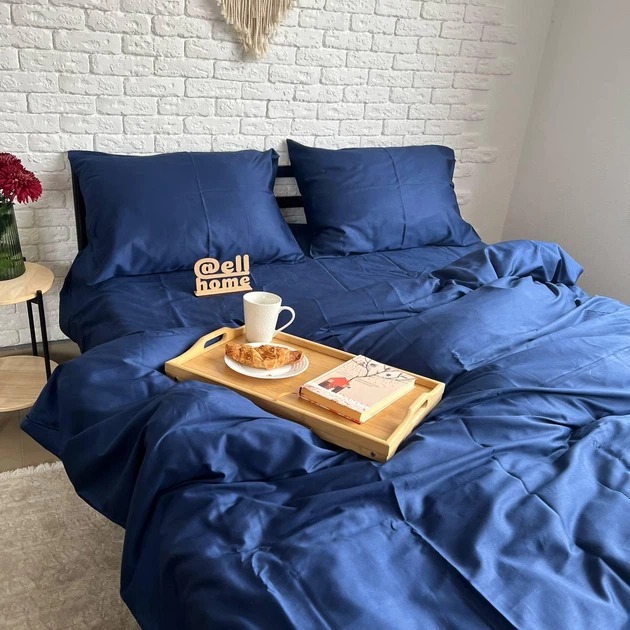 Комплект постільної білизни Ell Home сатин PREMIUM (Туреччина) синій євро 50/70 на резинці 180/200