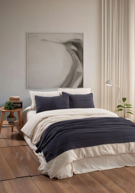 Комплект постільної білизни MERISET 120091596 Двоспальний Сатин Жакард Синій