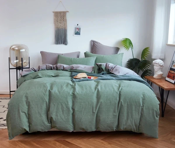 Постільна білизна євро двостороння Love You Варена бавовна однотонна 62025 200х220 см зелено-сіра 5130608