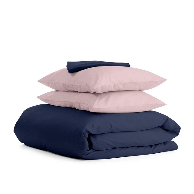 Напівтораспальний комплект COSAS DARK BLUE SATIN CS1 Сатин 160х220 см Бежевий/Синій