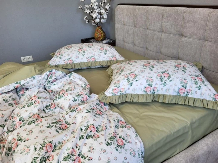 Постільна білизна Каприз з рюшею, ранфорс Сімейний розмір, наволочки 70/70