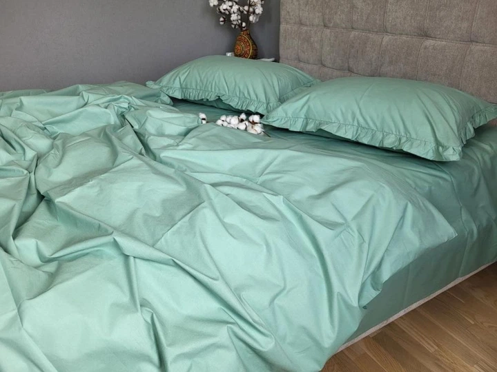 Постільна білизна Бірюзовий з рюшею, ранфорс Сімейний розмір, наволочки 50/70