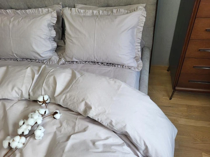 Постільна білизна Беж з рюшею, ранфорс Сімейний розмір, наволочки 50/70