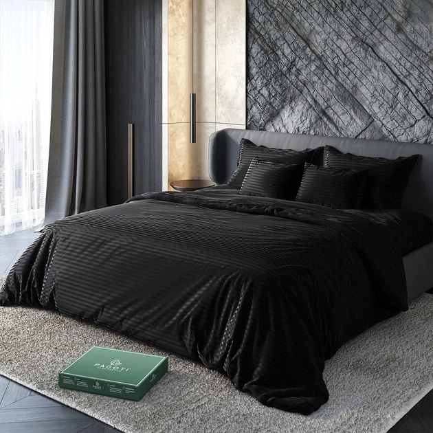 Комплект постільної білизни страйп-сатин PAGOTI Maestro чорний (двоспальний/50х70)