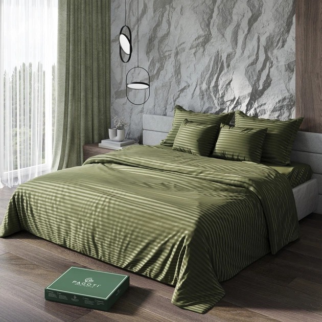 Комплект постільної білизни страйп-сатин PAGOTI Maestro хакі (двоспальний/50х70)