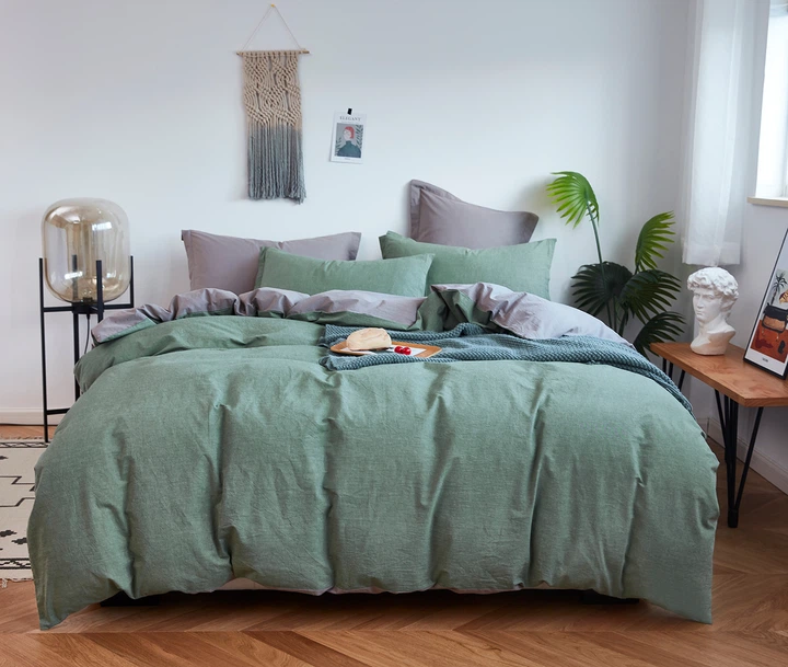 Постільна білизна Love You Варена бавовна Зелений+Сірий двостороння Євро (A-023173)