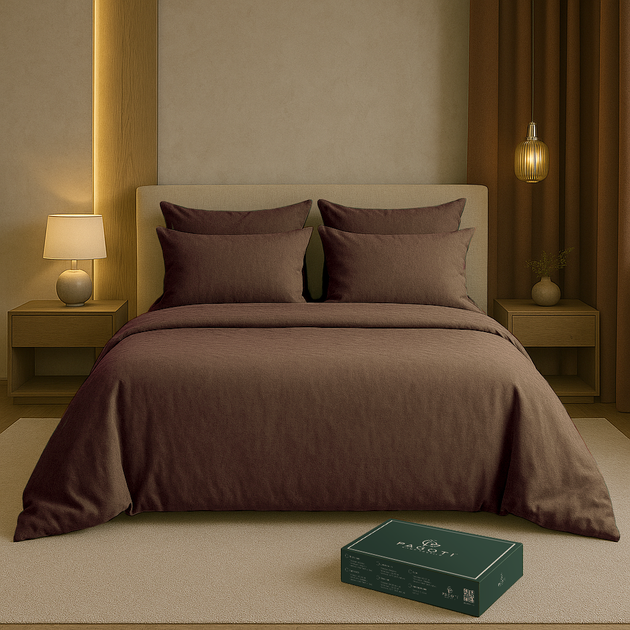 Комплект постільної білизни варена бавовна PAGOTI Natura шоколадний (полуторний/2*70х70 см)