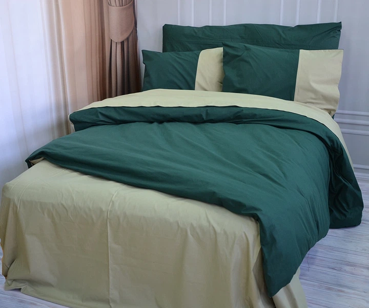 Комплект постільної білизни MERISET 120090184 Сімейний на резинці Ранфорс Зелений