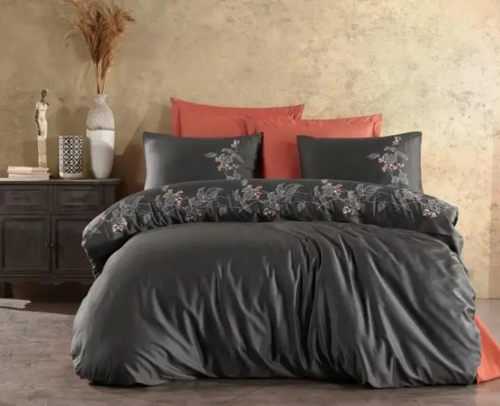 Постільна білизна Dantela Vita сатин із вишивкою - Efra antrasit антрацит євро