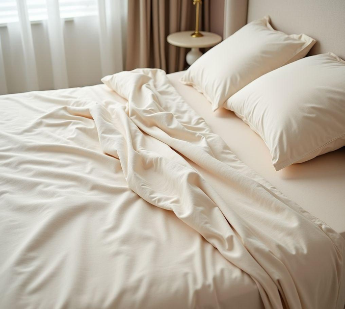 Комплект постільної білизни з простирадлом на резинці Almira Mix Преміум Сатин Кремовий Полуторний