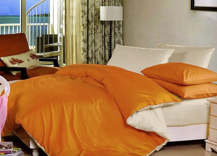 Двосторонній комплект постільної білизни Almira Mix Преміум Сатин Помаранчевий + Шампань Євро максі