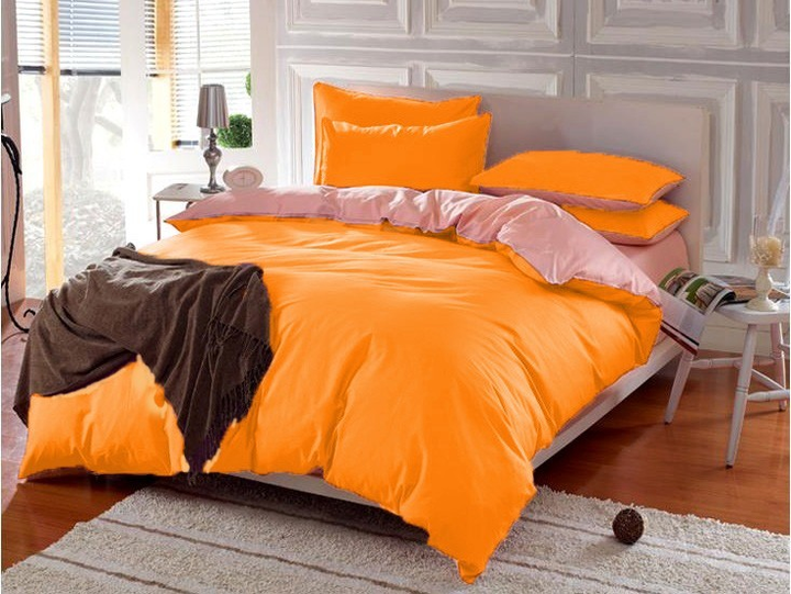 Двосторонній комплект постільної білизни Almira Mix Преміум Сатин Помаранчевий + Корал Євро максі