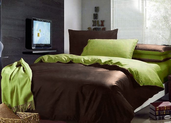 Двосторонній комплект постільної білизни Almira Mix Преміум Сатин Коричневий + Салатовий Євро максі