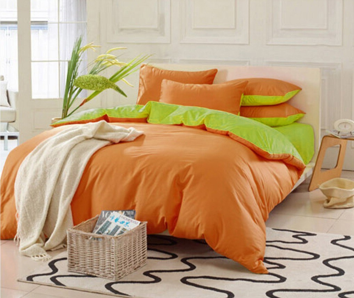 Двосторонній комплект постільної білизни Almira Mix Преміум Сатин Помаранчевий + Салатовий Євро максі