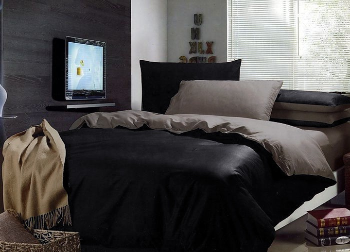 Двосторонній комплект постільної білизни Almira Mix Преміум Сатин Коричневий + Чорний Євро максі