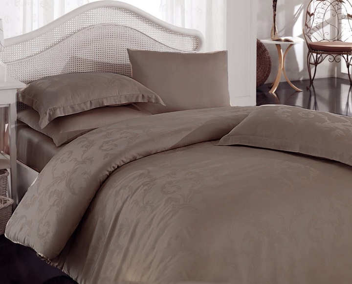 Комплект постільної білизни MERISET 120091047 Сімейний на резинці Сатин Жакард Кавовий