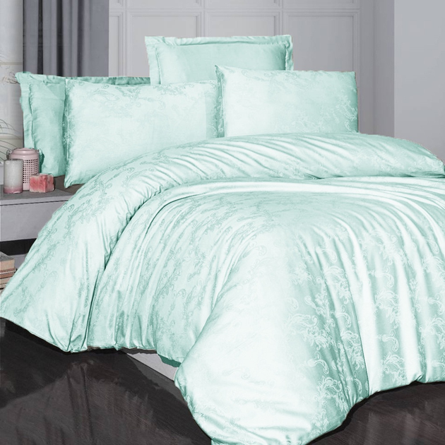 Комплект постільної білизни MERISET 120091571 Сімейний на резинці Сатин Жакард Ментол