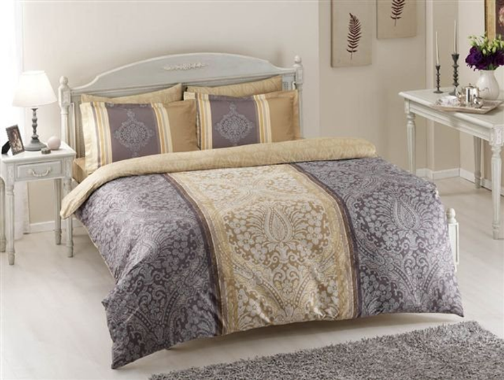 Постільна білизна Dantela Vita сатин з мереживом Safir bej бежевий євро (svt-2000022295284)