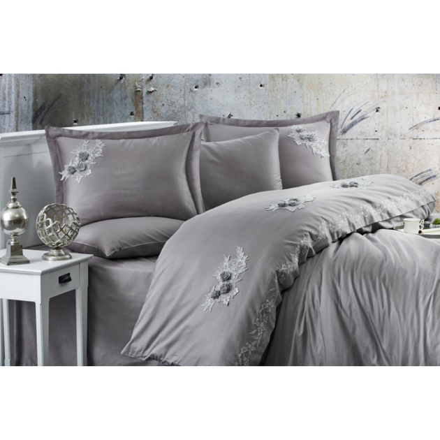 Постільна білизна Dantela Vita сатин з мереживом Safir antrasit антрацит євро (svt-2000022295307)