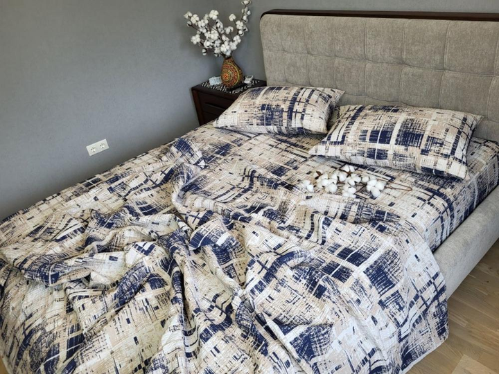 Постільна білизна з резинкою Кардамон, ранфорс гофра (жатка) Евро розмір, наволочки 70/70