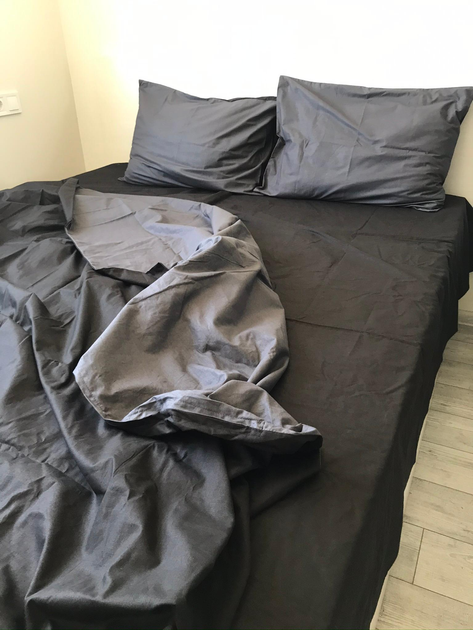Постільна білизна з резинкою Графіт + чорний, ранфорс Евро розмір, наволочки 50/70