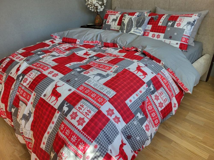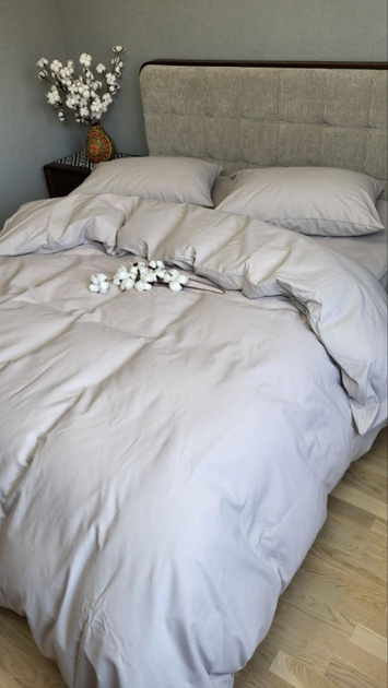 Постільна білизна з резинкою Сірий мусон, фланель(байка) Евро розмір, наволочки 50/70