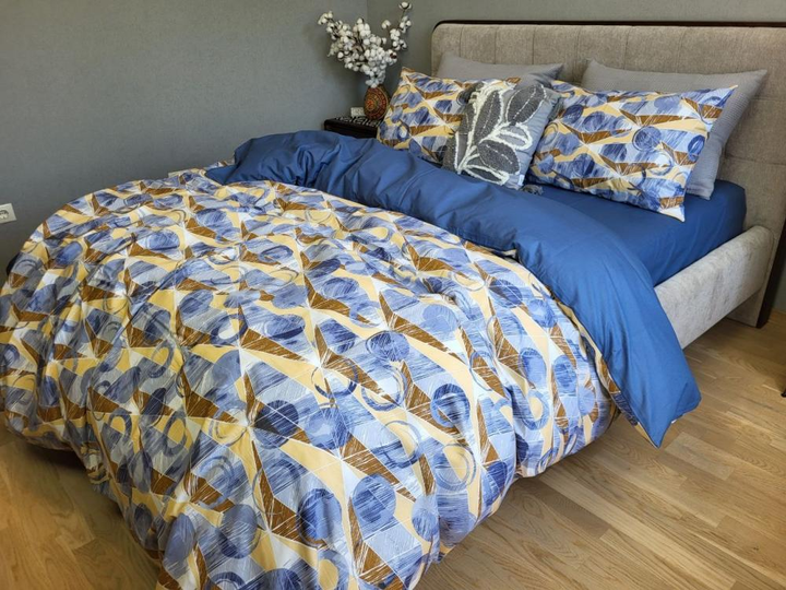 Постільна білизна з резинкою Політ, ранфорс гофра (жатка) Евро розмір, наволочки 70/70