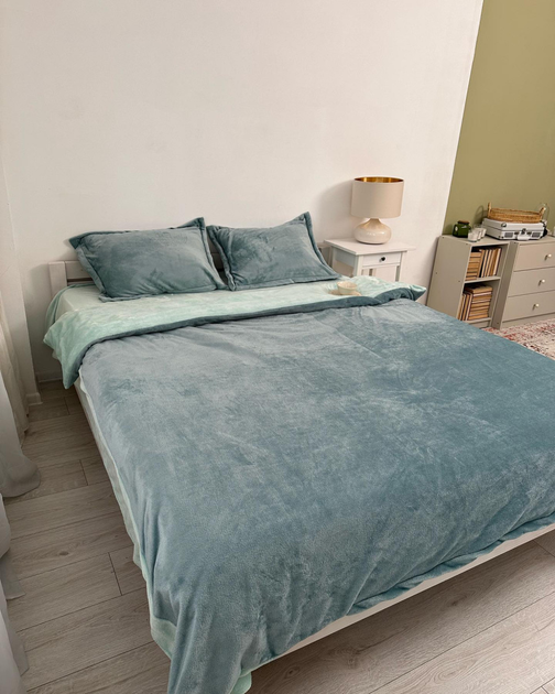 Постільна білизна плюшева євро Dushka Home 20957 200х220 см бірюзова з м'ятним