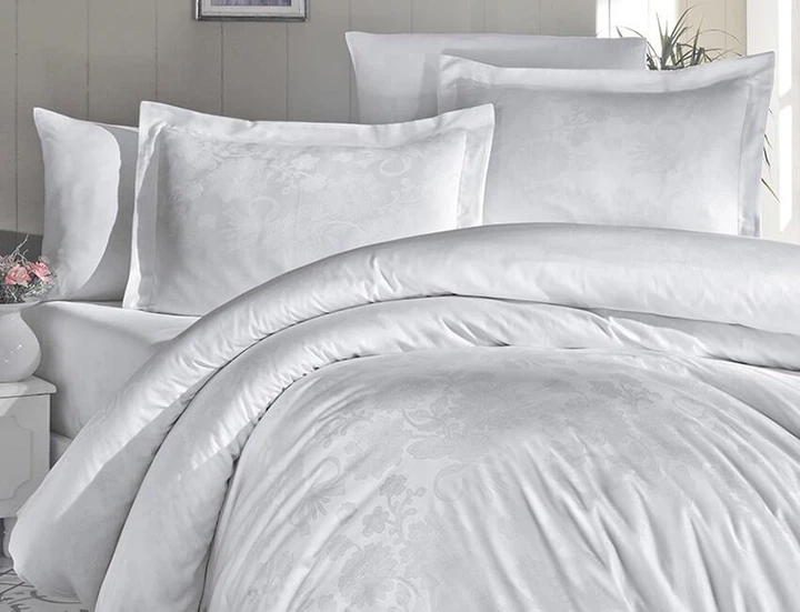 Двоспальний Євро комплект First Choice Herra Beyaz Жаккард 200х220 см наволочки 2 x 50х70 см, 2 x 70х70 см
