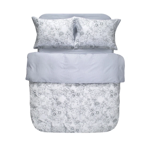 Комплект постільної білизни Cozy сіро-блакитний з вишитими гілками в тон Півтораспальний 150*200 см простирадло на гумці