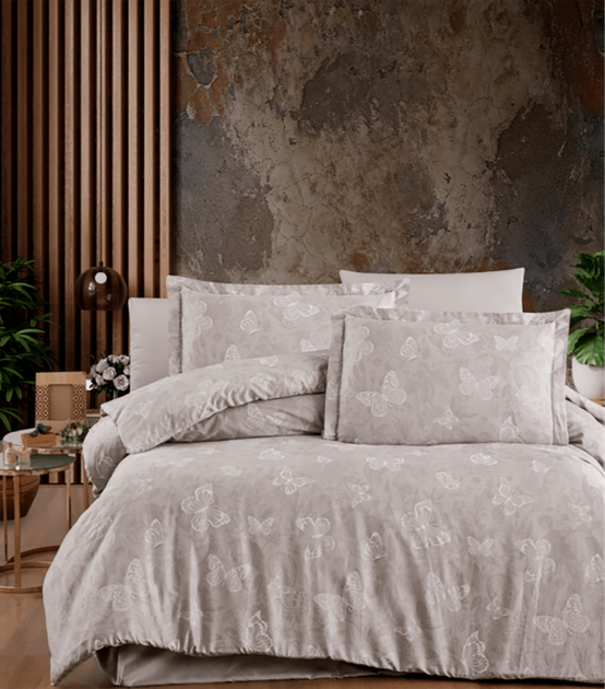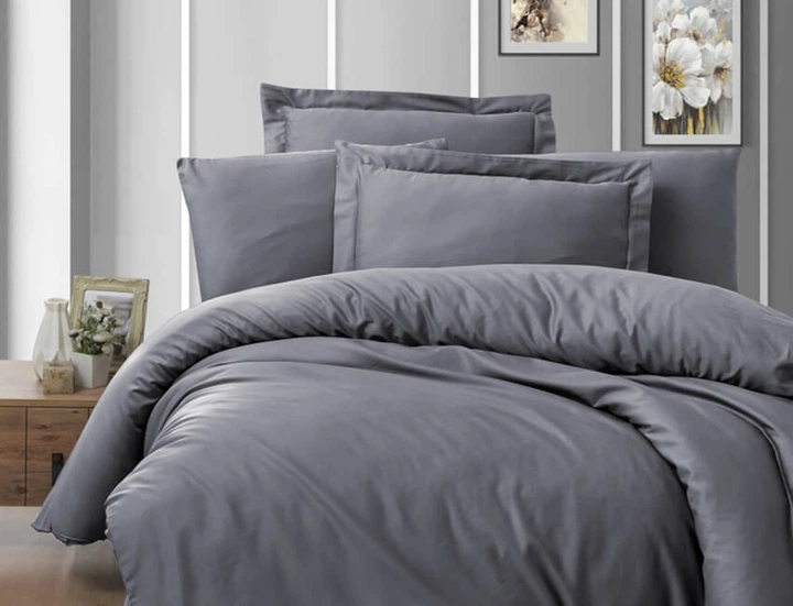 Комплект постільної білизни Satin Cotton First Choice - First Choice - S-591 Sofira Indigo - Євро - Світло-сірий