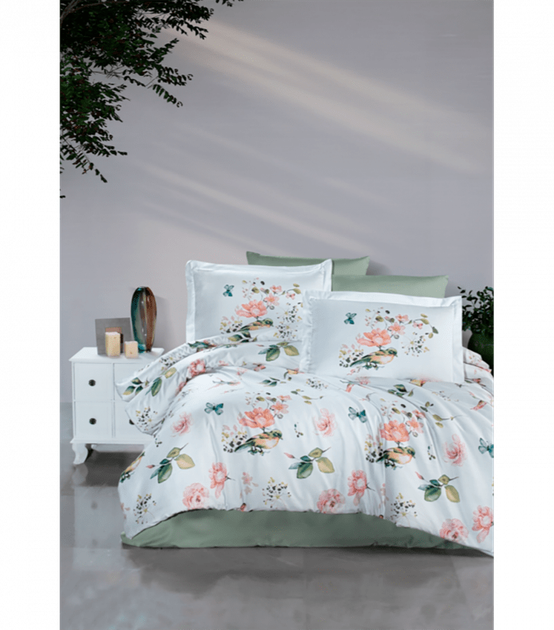 Комплект постільної білизни Satin Cotton First Choice - First Choice - S-596 Alice Green - Євро - Світло-зелений з білим