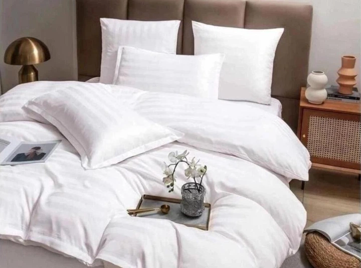 Постільна білизна з резинкою WHITE, сатин страйп PREMIUM 2/2см Сімейний розмір, наволочки 50/70