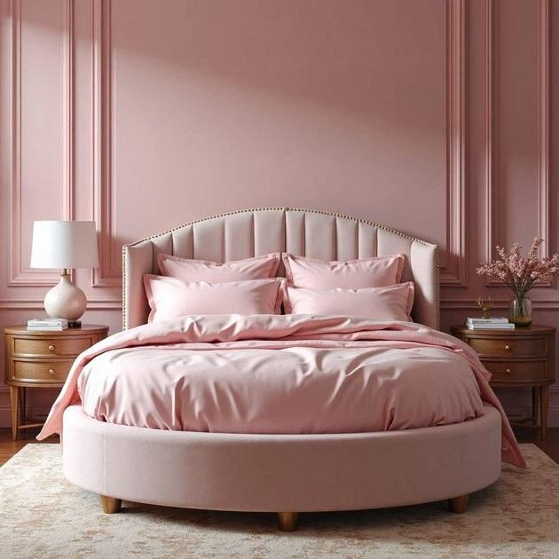 Постільний комплект на кругле ліжко діаметр до 240 Almira Mix Преміум Сатин Яскраво Рожевий Євро максі