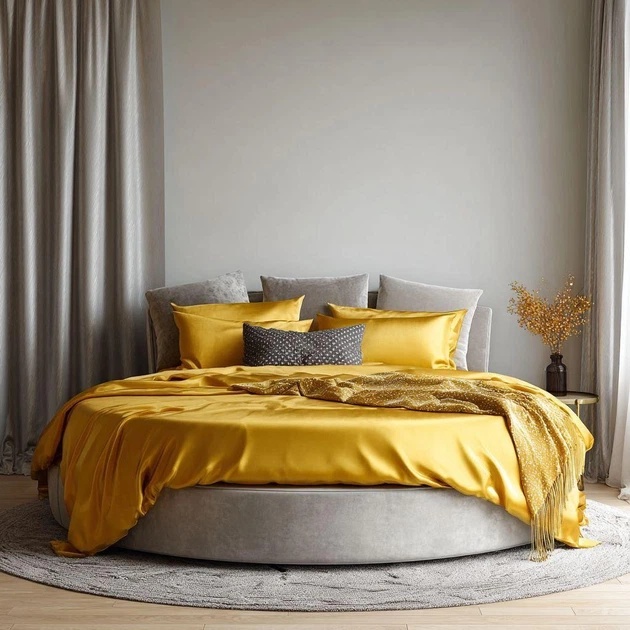 Постільний комплект на кругле ліжко діаметр до 240 Almira Mix Преміум Сатин Золото Євро максі