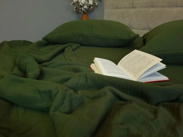 Постільна білизна Комфорт текстиль Муслін однотонний чотиришаровий Євро 200*220 см Темно зелений