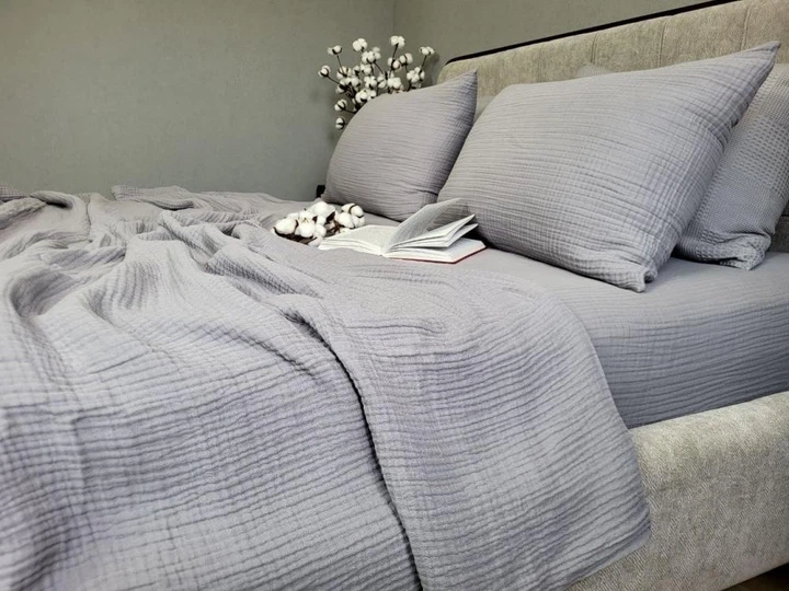 Постільна білизна Комфорт текстиль Муслін однотонний чотиришаровий Євро 200*220 см Сірий димчастий