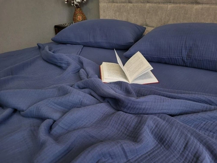 Постільна білизна Комфорт текстиль Муслін однотонний чотиришаровий Євро 200*220 см Синій