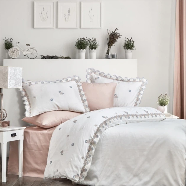 Постільна білизна Dantela Vita сатин з мереживною вишивкою - Delfina євро