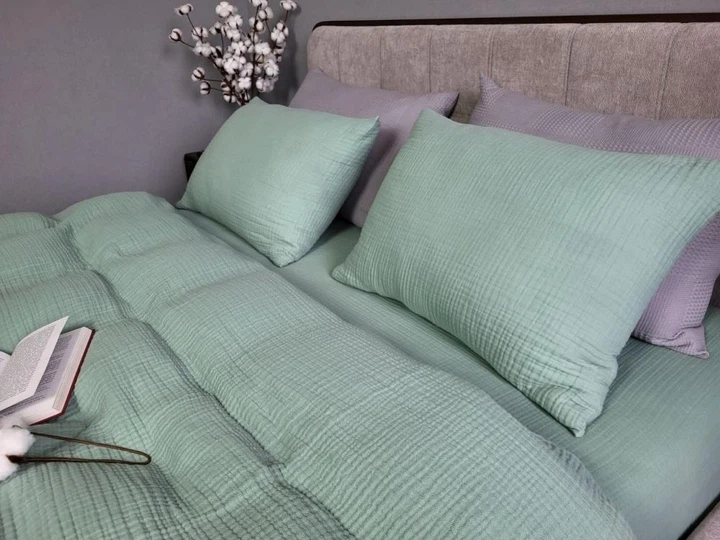 Постільна білизна Комфорт текстиль Муслін однотонний чотиришаровий Євро 200*220 см Весняна зелень