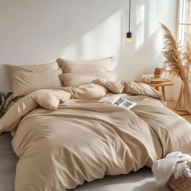 Комплект постільної білизни Almira Mix Преміум Сатин Бежевий Перлинний Сімейний