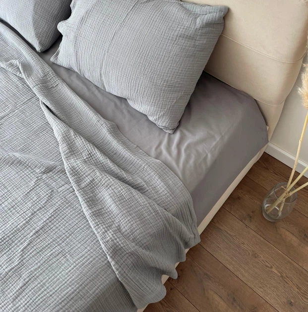 Літній комплект з преміальним мусліном LavSon 4-х шаровий Муслін Сімейний 2х - 150х240 з простирадлом на гумці Ранфорс 200х2