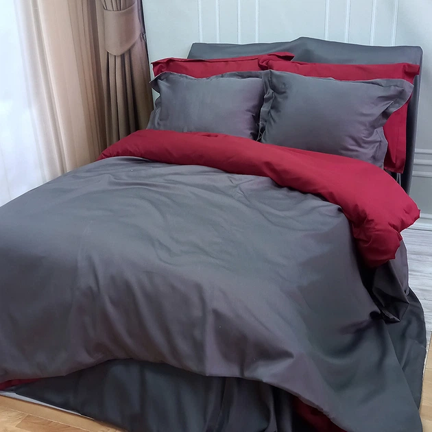 Постільна білизна MERISET ДУЕТ ANTHRACITE WINE BORDO Premium Сатин Сімейний комплект на резинці 180х200х25 см